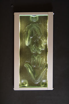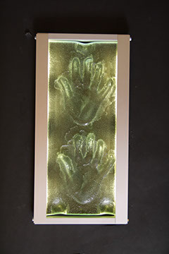 Mani d'artista, vetro fusione, alluminio e led